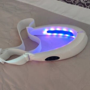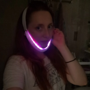 "The product definitely slims the face and defines the jawline. I use the lighting (blue/red) and light vibration at the same time, three times a week. I would say it took a month to see visible changes. I wanted to try this before I went to a plastic surgeon for cool sculpting and other treatments."